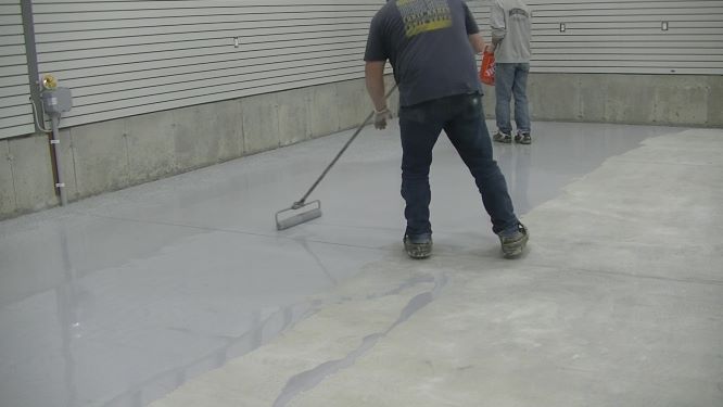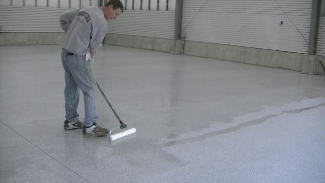 Continue this process until your garage floor is covered with the epoxy base coat.