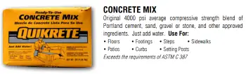 Regular concrete mix is made or Portland cement, sand, and gravel. It's commonly used for slabs, patios, floors, footings, steps, and sidewalks.