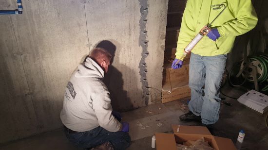 We had great success using RadonSeal's 2 component polyurethane foundation crack repair kits on this job.