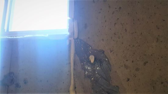 The plastic "tabs" you see in the picture are the injection ports we have already installed in preparation for fixing and waterproofing the crack.