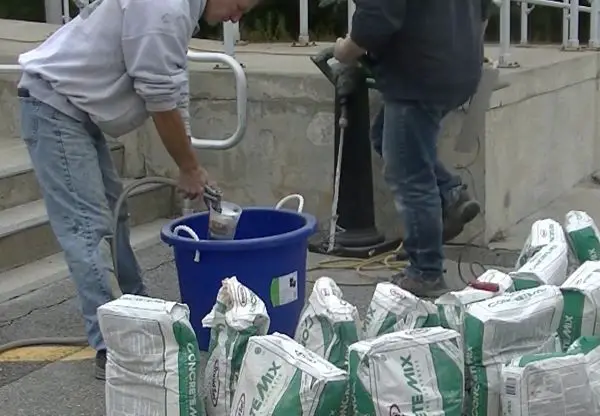 I'm using bags of Quikrete concrete mix and showing you how to mix these bags by hand.