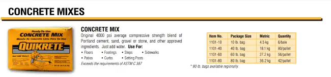 When you take a look at Quikrete's product guide, it shows you how many 80 lb. bags of concrete mix they put on a pallet.
