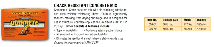 TYPE OF CONCRETE Concrete MIx Concrete Mix Quikrete 5000 Crack Resistant Mix Fast Setting Mix |