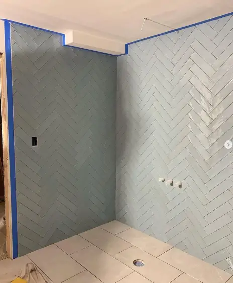 These shower walls and the floor was covered using tiles in this basement remodel project.