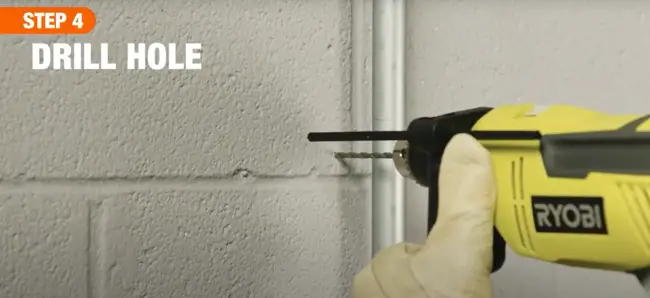 BE CAREFUL: Sometimes while drilling a "puff" of concrete dust will blow out of the hole. Make sure to wear your safety goggles and mask to protect yourself.