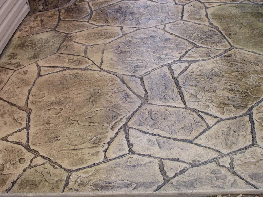 Concrete stamped to look like slate is a good surface for all patios, walkways, and pool decks