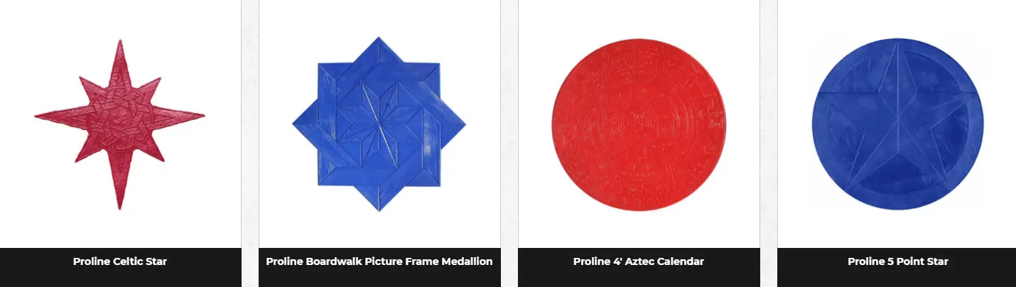 All these stamp patterns will make your concrete look like wood. The wood plank look is very in these days.